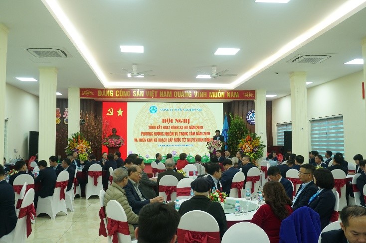Chiều ngày 6/2/2026, Công ty NSHN đã tổ chức Hội nghị Tổng kết hoạt động sản xuất kinh doanh năm 2025, Phương hướng nhiệm vụ trọng tâm năm 2026 và triển khai kế hoạch cấp nước Tết Nguyên đán Bính Ngọ. Đây là dịp để toàn thể Ban lãnh đạo và CBNNV Công ty cùng nhìn lại những kết quả đã đạt được trong năm vừa qua, phát huy trí tuệ tập thể xây dựng định hướng chiến lược cho năm sản xuất mới và gặp mặt tri ân các thế hệ Lãnh đạo, Chủ tịch Công đoàn qua các thời kỳ trong dịp đầu xuân năm mới.
